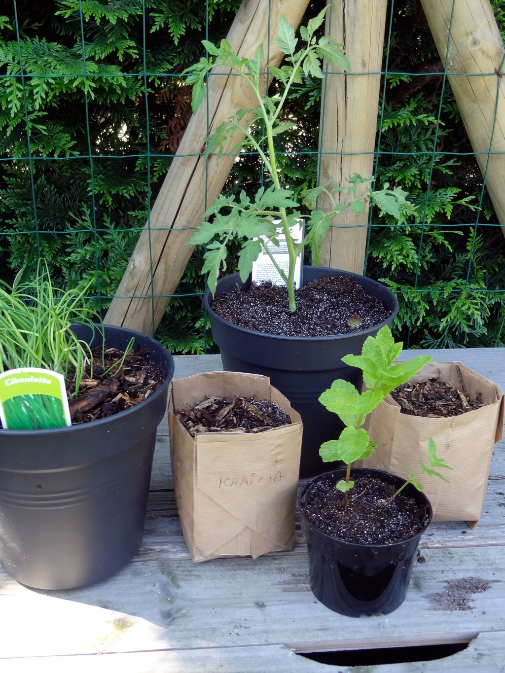 Vendredi 25 mai 2012, nous avons reçu un groupe d'adultes de la maison pour tous Berty Albrecht, faisant ainsi le lien entre leur projet autour de l'alimentation et notre action Jardin d'échanges. Nous leur avons fait découvrir les plantes aromatiques du jardin, thym, herbe à curry, menthe, mais aussi les premiers plants de tomate, les radis de l'année dernière , les salades etc... Les participants ont appris à fabriquer des pots à semis en papier qui leur ont servi à semer des graines provenant du jardin ou de trocs verts. Puis ils ont planté basilic, tomates,persil, ciboulette.