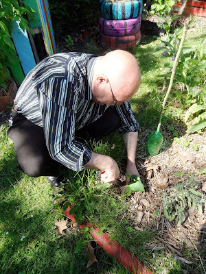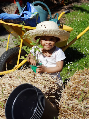 Vendredi 25 mai 2012, nous avons reçu un groupe d'adultes de la maison pour tous Berty Albrecht, faisant ainsi le lien entre leur projet autour de l'alimentation et notre action Jardin d'échanges. Nous leur avons fait découvrir les plantes aromatiques du jardin, thym, herbe à curry, menthe, mais aussi les premiers plants de tomate, les radis de l'année dernière , les salades etc... Les participants ont appris à fabriquer des pots à semis en papier qui leur ont servi à semer des graines provenant du jardin ou de trocs verts. Puis ils ont planté basilic, tomates,persil, ciboulette.