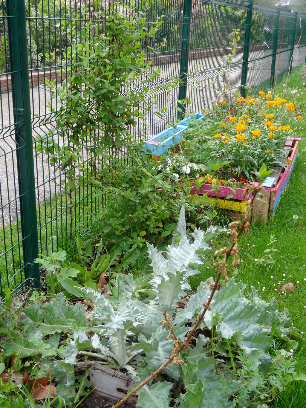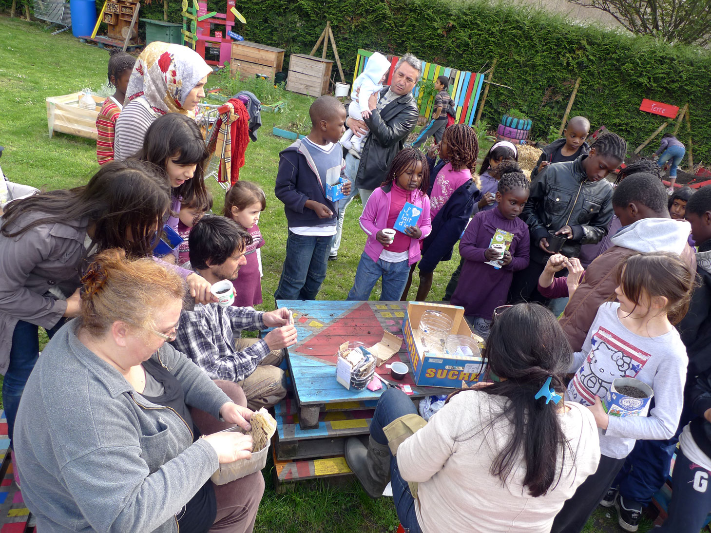Enfin une belle journée pour investir le jardin! Les habitants étaient au rendez-vous, nous étions plus de 30, adultes et enfants pour ce "premier" jour printanier. L'équipe des espaces verts nous avaient gentiment tondu la pelouse(adieu nos prêles et roses trémières!), rendant l'espace plus agréable et praticable.