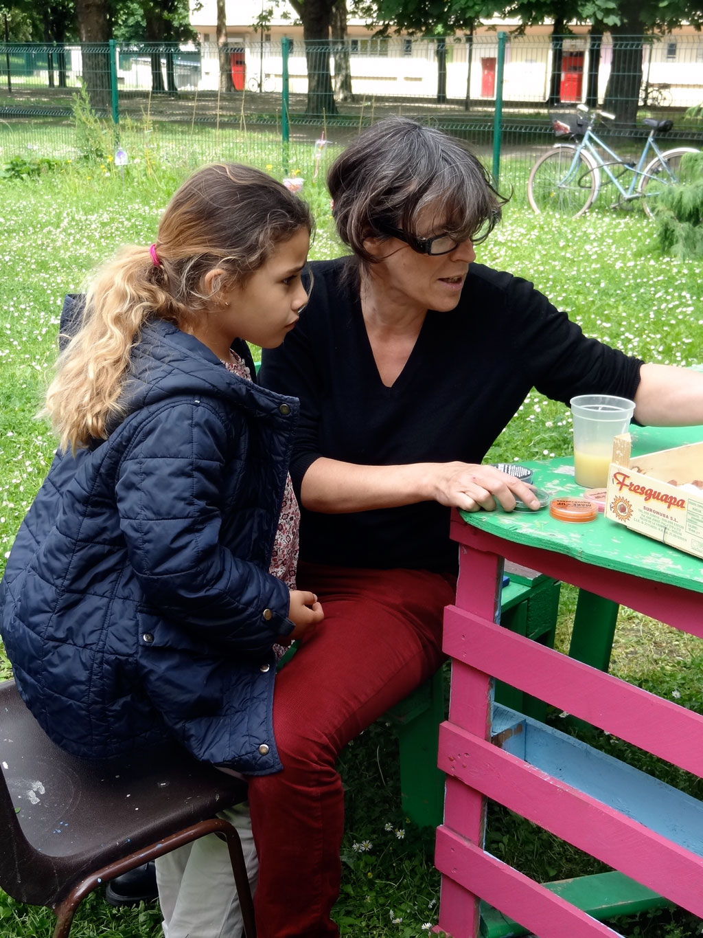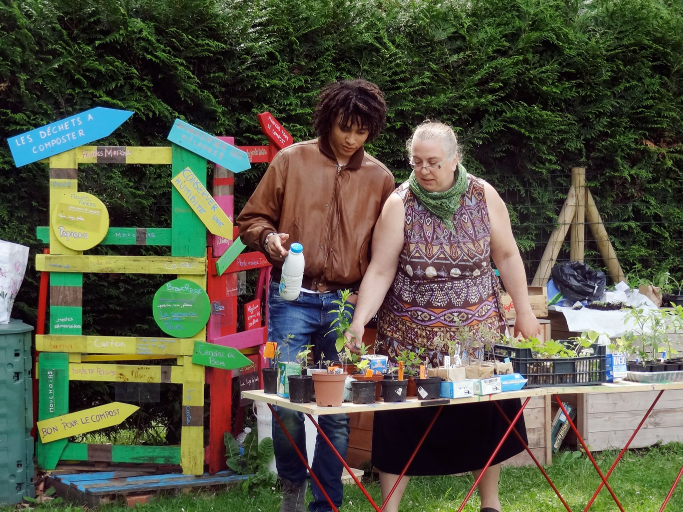 Le samedi précédent, nous avions eu plus de chance avec la météo. Notre journée portes ouvertes pendant la brocante de quartier a été un franc succès . Nous avions organisé plusieurs stands (repas bio, vente et troc de plantes, maquillage) et la compagnie Grain Magique était également de la partie pour une improvisation de danses. Nous avons également distribué les sachets de graines de Laissons pousser afin que les visiteurs puissent semer où bon leur semble en ville!Merci à nos bénévoles qui ont préparé des gâteaux, joué de la guitare, et participé aux activités de la journée.