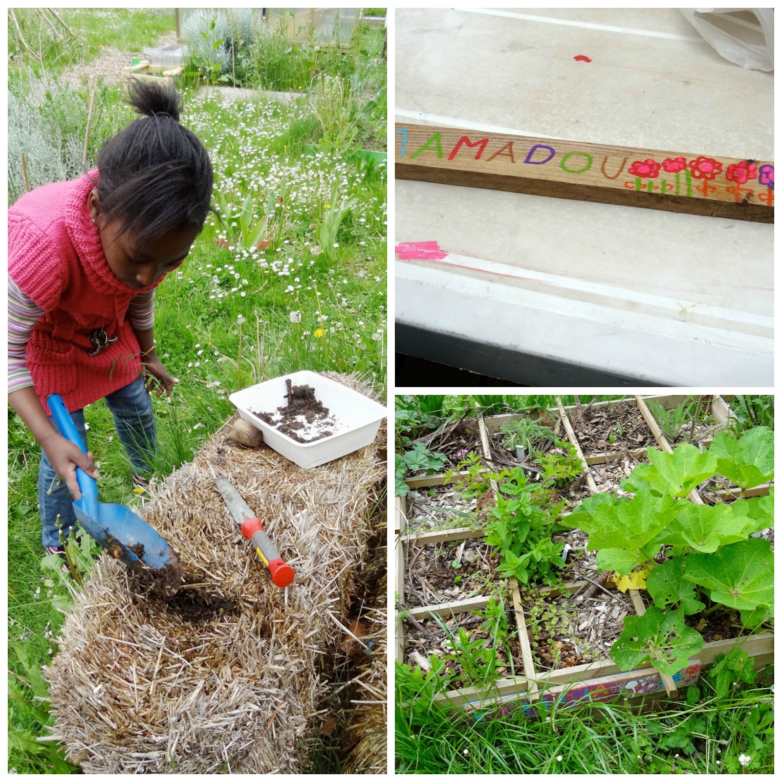 Tout le monde s'est mis à la tâche pour désherber les carrés que nous voulions utiliser et pour planter toutes ces jeunes pousses. Nous avons même planté du fenouil et des potirons dans les bottes de paille.Les fleurs et autres plantes grimpantes ont été installées le long des grillages, il ne manque plus que le soleil pour donner un bon coup de fouet à ces nouvelles plantes!