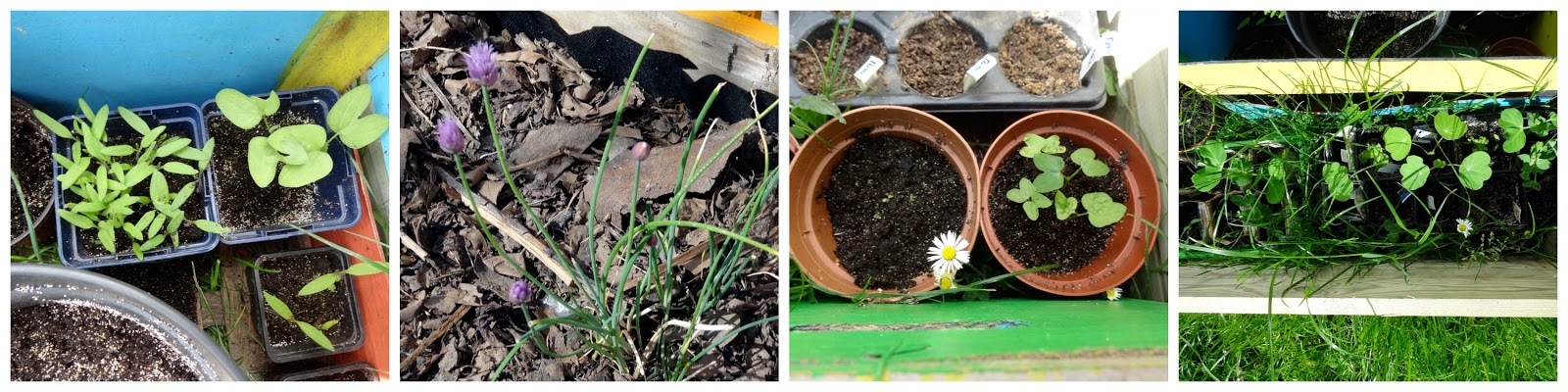 Les semis effectués au jardin ont bien pris, et nous avons également ramené ceux que nous avions mis au chaud chez nous( haricot d'espagne, concombre, potiron Giraumon, petits pois, patidou et fenouil).