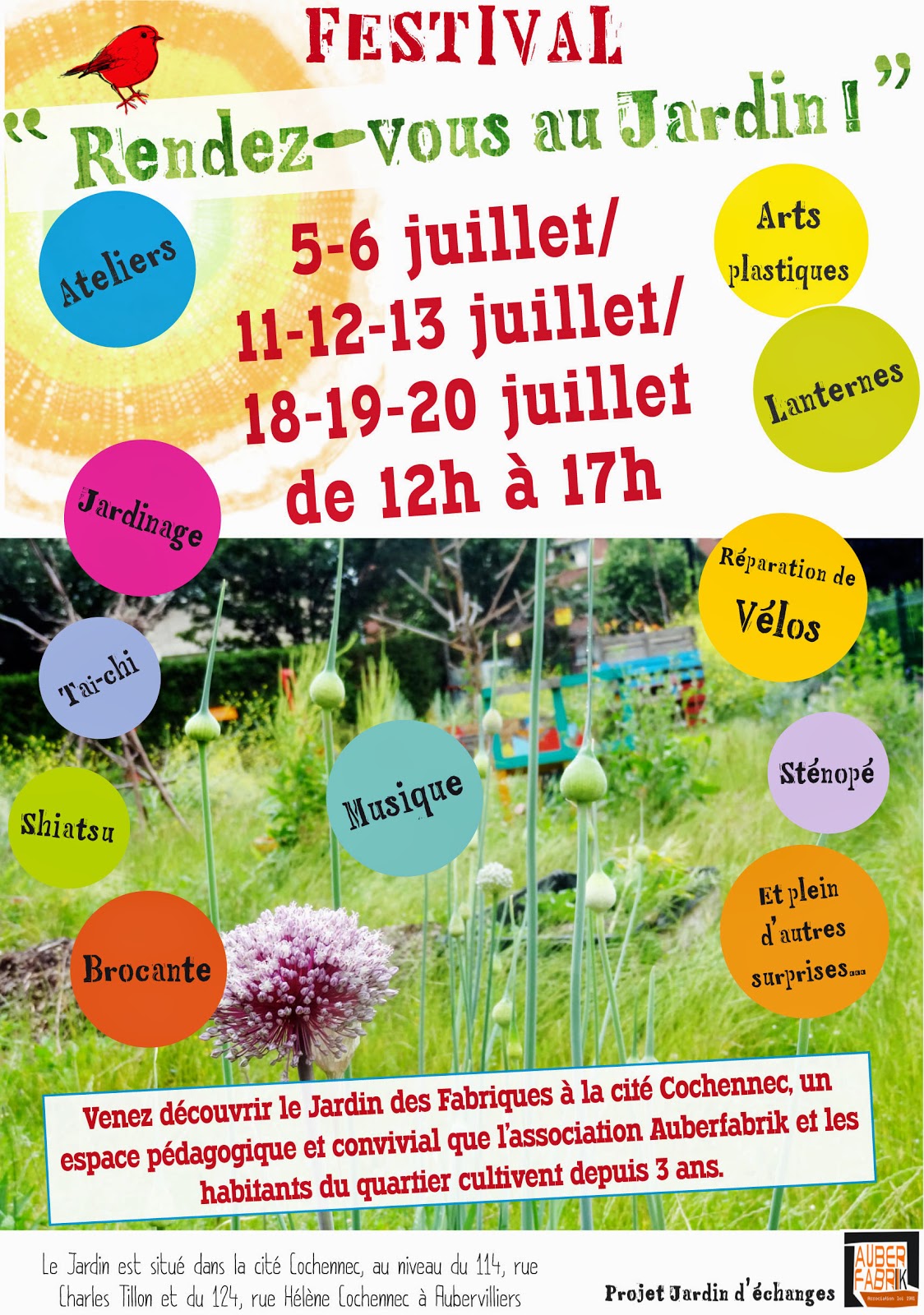 Ateliers d'arts plastiques, ateliers musicaux, fabrication de lanternes, brocantes, réparation de vélo, jardinage et plein d'autres surprises encore...