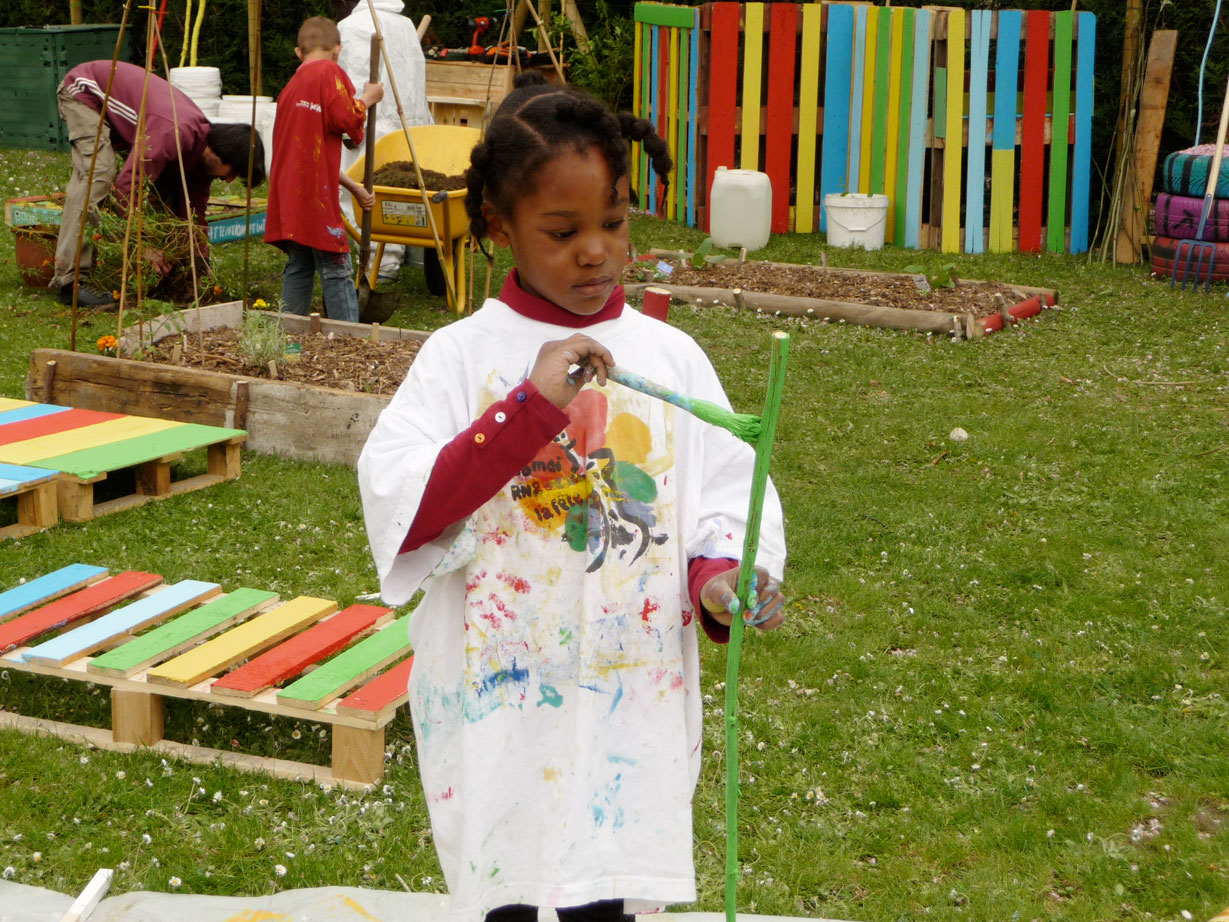 L’objet de l’action était d’initier des petits groupes d’enfants et d’adultes à des pratiques artistiques, d’expérimentation, de recyclage, de bricolage et de jardinage, à travers la création d’une parcelle paysagée dans le temps.